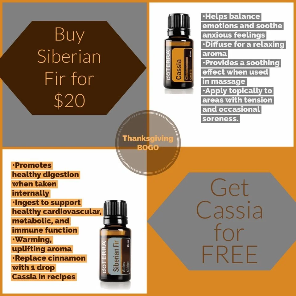 Warm up your holidays this year with these two oils. Siberian Fir can help balance emotions and is really great topically after a workout, while Cassia helps to promote healthy digestion and immune functions.